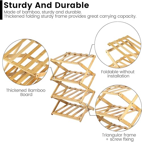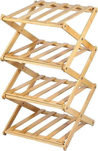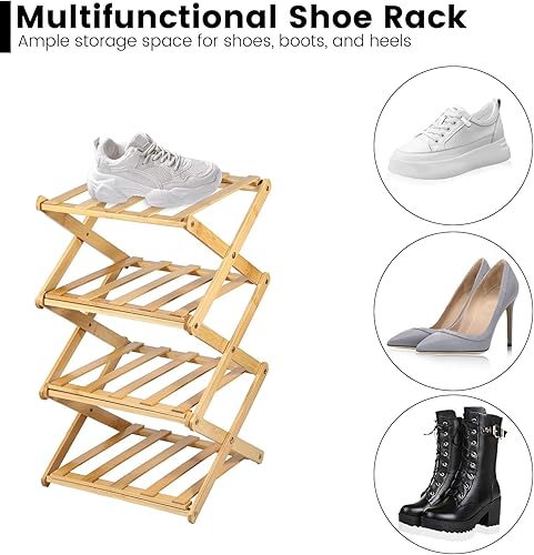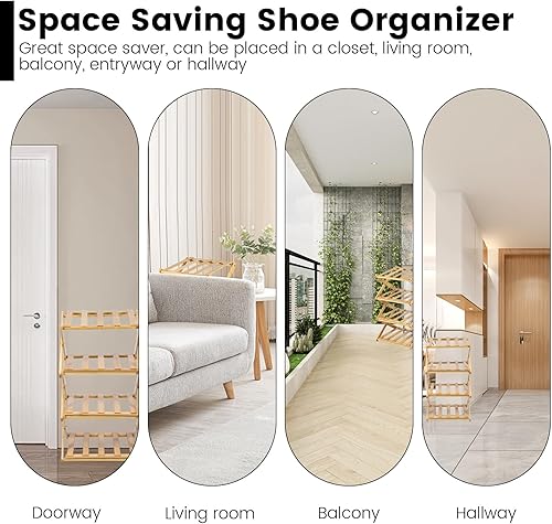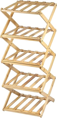 Étagère à chaussures étroite en bambou portable pliable verticale meuble de rangement à chaussures d'angle pour entrée, couloir, chambre à coucher (5 étages)