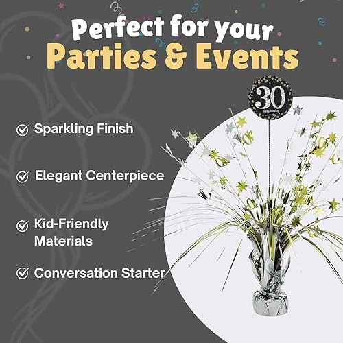 amscan 10132706 Centre de table 30 ans Doré pailleté 33 cm