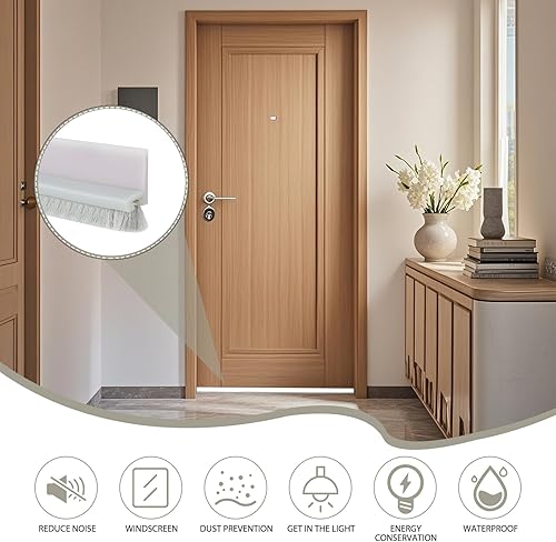 Joint Porte, 100cm Isolation Phonique Porte Isolation Bas De Porte White with Brush Base Sector Seal Boudin Porte Isolation Bas De Porte Anti Pluie Isolant Phonique Porte