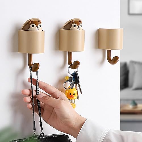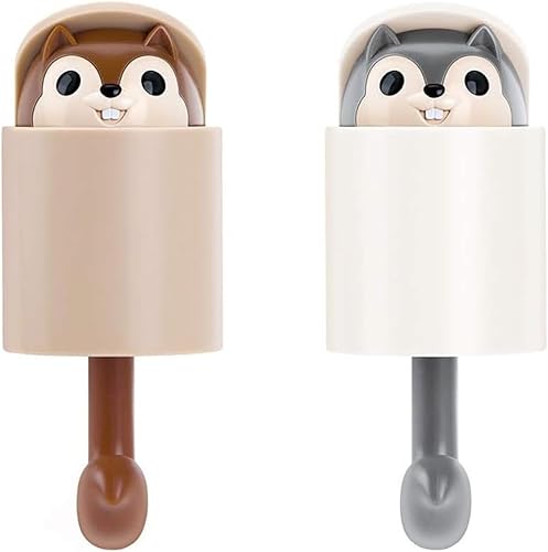 Tinkber 2 Pièces Crochet À Clés Mural de Dessin Animé, Patère de Dessin Animé, Patère Créative, Crochet en Forme D'Écureuil, Adapté Aux Serviettes, Clés, Sacs, Chapeaux (Gris + Marron)