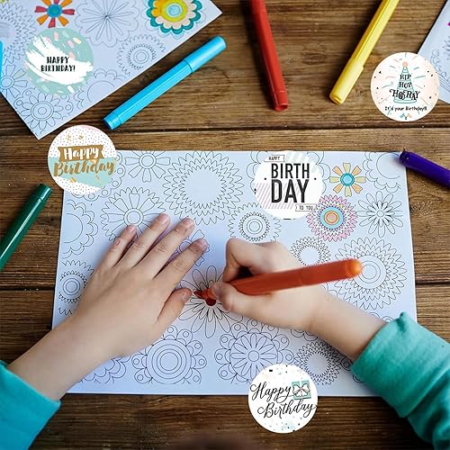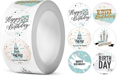 YUNYU Lot de 500 autocollants « Happy Birthday » pour scrapbooking, emballage cadeau, décoration de fête, travaux manuels, enveloppes et décorations de gâteaux, fournitures de fête d'anniversaire