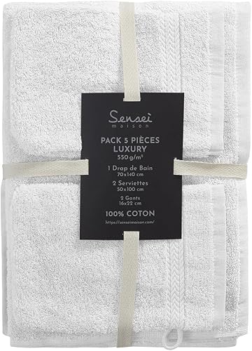 Sensei Maison - Ensemble de Bain 5 pièces (1 Drap de Bain + 2 Serviettes de Toilette + 2 Gants) Luxury - - Eucalyptus
