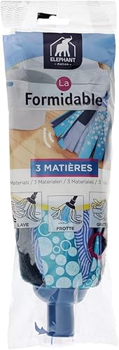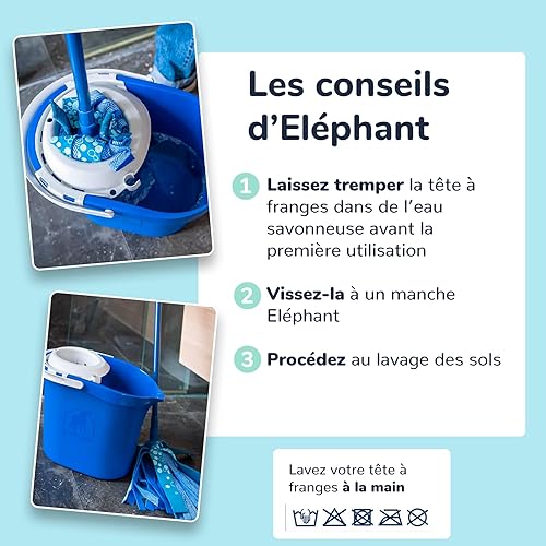 ÉLÉPHANT Maison - Tête À Franges La Formidable - Tous Types de Sols - Multi-Actions, Lave, Frotte & Désincruste en Profondeur, Franges Bleues & PAD Grattant - Bleu - Haute Qualité - Fabriqué en France