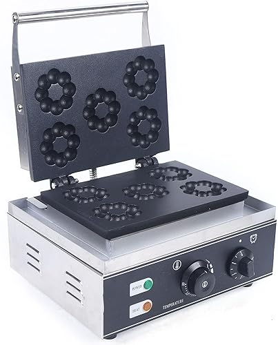 Machine à donuts à gaufres 1500 W antiadhésive Plum Flower 5 trous double face Appareil à donut électrique haute conductivité thermique