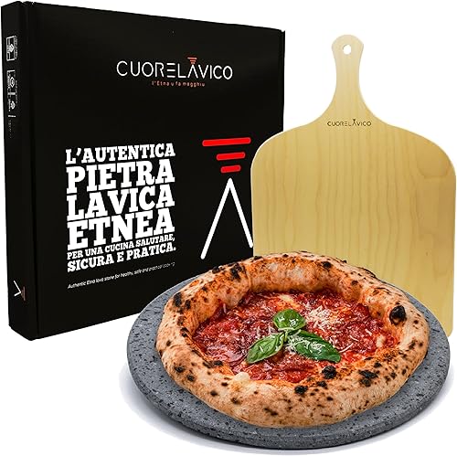 CUORE LAVICO – Kit plaque réfractaire en pierre de lave etnea ronde pour pizza diamètre 31,5 SP. 1 cm + pelle à pain et pince compatible avec : SPICE CALIENTE, G3 FERRARI, ARIETE 909, OPTIMA HAPPY