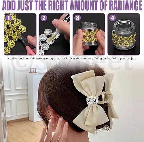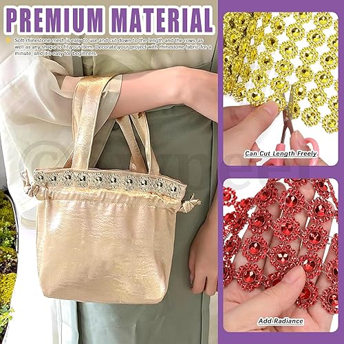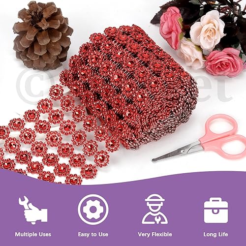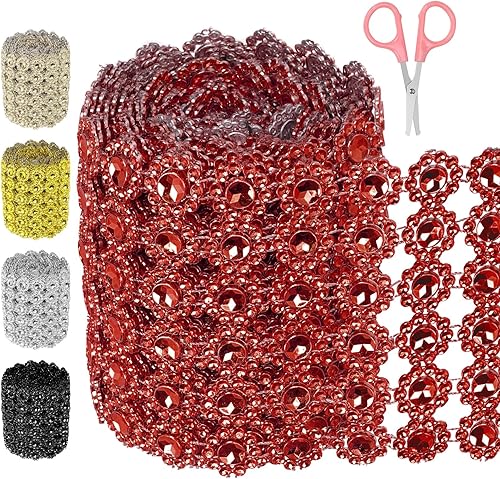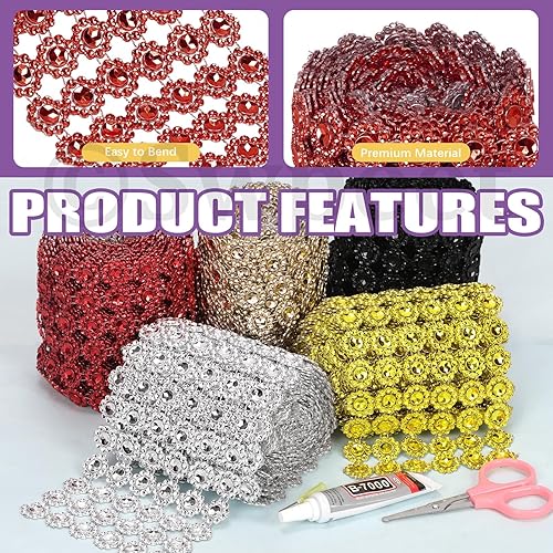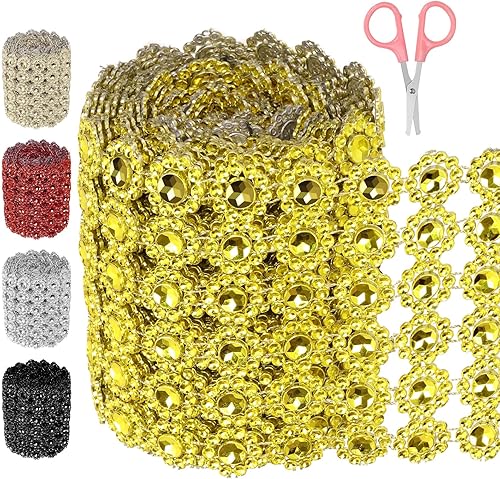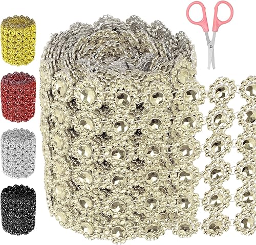 Swpeet 1 rouleau 4 pouces × 3 Yards 6 rangées de strass argenté avec ciseaux, strass en cristal artificiel Flower Mesh Band, ruban décoratif brillant enveloppé de diamants pour la décoration
