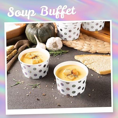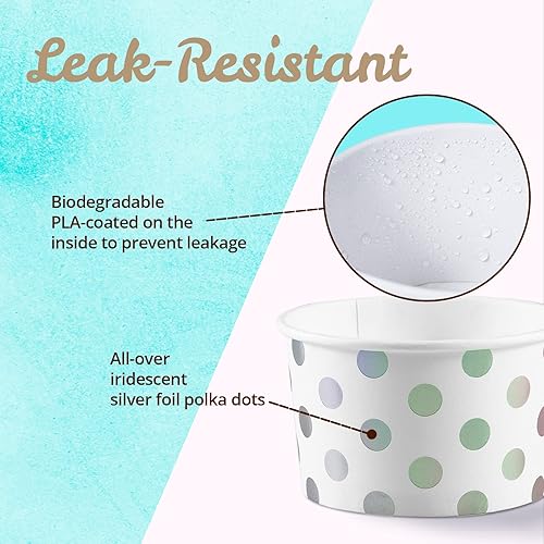 Coupes à Glace en Papier MATICAN, 50 Unités de 160 ml avec Pois Argentés, Idéales pour Desserts Chauds ou Froids