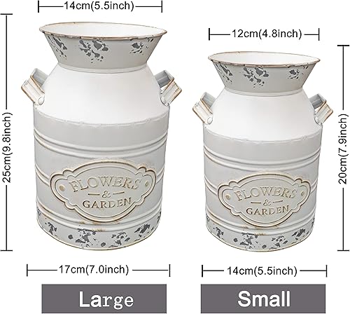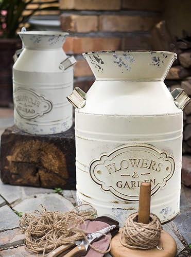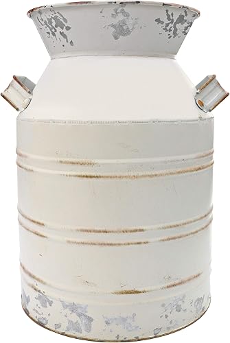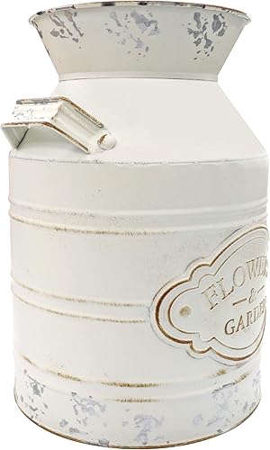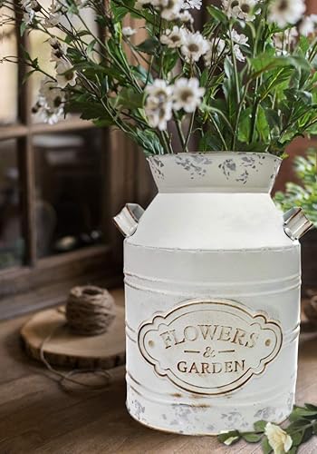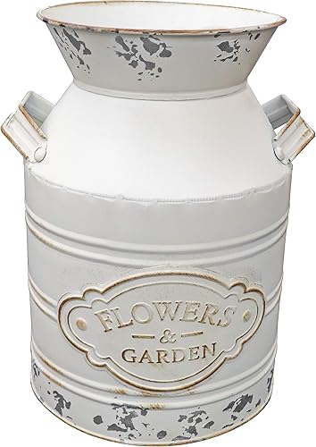 Soyizom Vase à fleurs vintage rustique en métal galvanisé de style shabby chic avec poignée pour décoration de cuisine, jardin, grande taille, 24 cm de hauteur