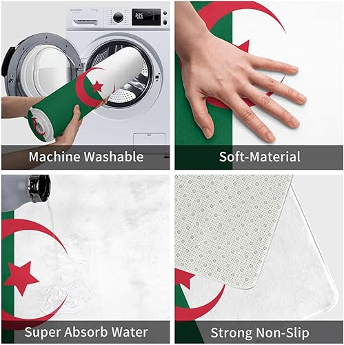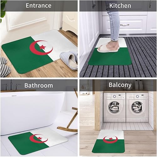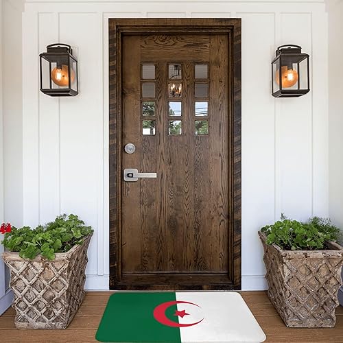 WZYWHJ Paillasson antidérapant 40,6 x 61 cm Facile à nettoyer Convient pour porte d'entrée, salon, salle de bain Motif drapeau de l'Algérie