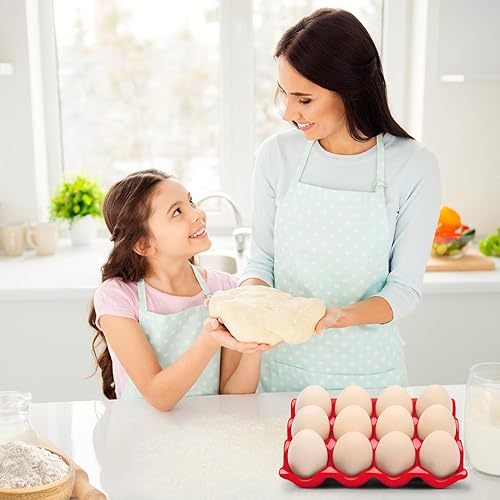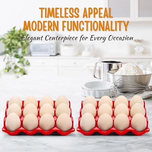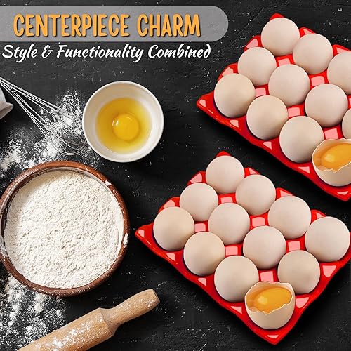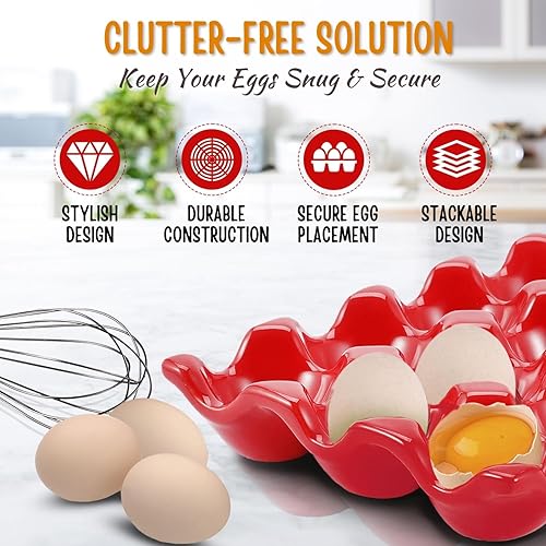 Flexzion Lot de 2 supports à œufs en céramique pour 12 tasses – Plateau à œufs en porcelaine – Support de service décoratif pour réfrigérateur, comptoir de présentation (rouge)