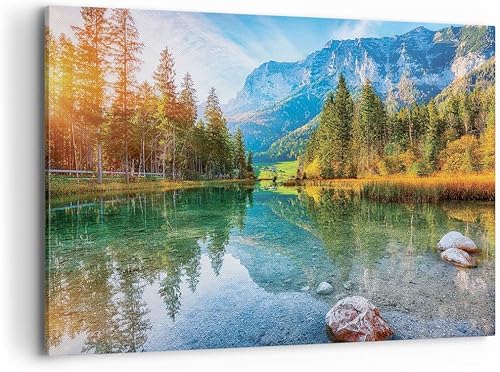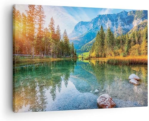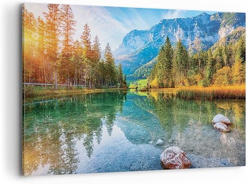Moderne Impression sur Toile 100x70cm Image Tableau Decoration Murale Paysage Montagnes Aube Grand Tableaux Decoratifs Muraux Chambre Horizontal Deco Cadre Décoration Salon Art Wall AA100x70-4456
