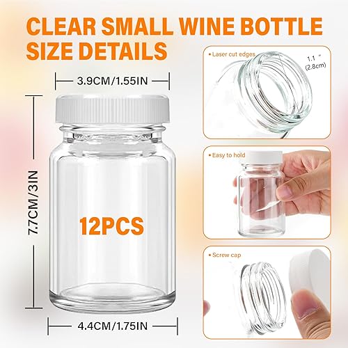 12 Petite Bouteilles en Verre Réutilisables de 60ml,Mini Bouteilles Verre avec Bouchon Hermétique,Bouteilles de Jus,pour Jus de Fruits,Shot de Gingembre,Whisky,Smoothies Boissons