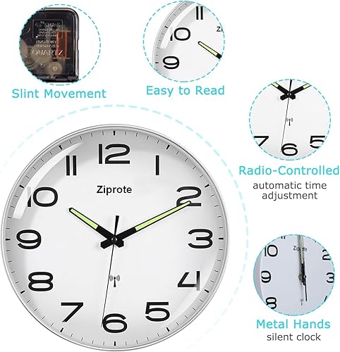 Horloge radiopilotée, Horloge Murale décorative Ronde, Moderne Horloge Murale silencieuse sans Tic-tac, Murale Facile à Lire pour Chambre, Chambre, Salon