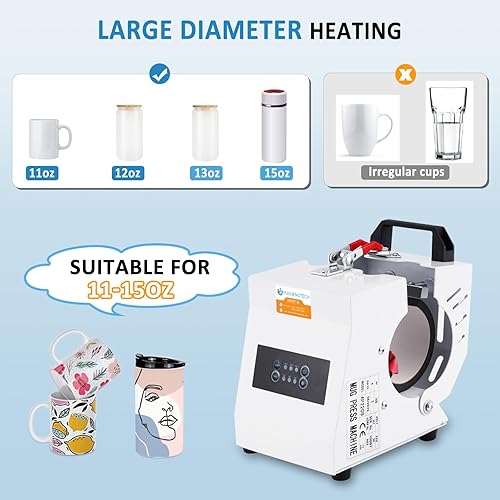 YUCHENGTECH Presse à Chaud Mug 10-15oz Presse à mug Sublimation Presse à Chaud pour Tasse avec Gants, Papier de Sublimation et Ruban Adhésif pour les Tasses à Café/Céramique/Métal DIY 300W