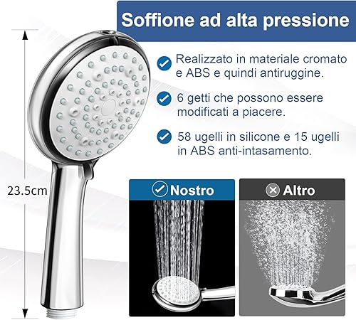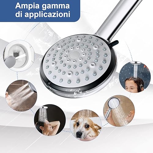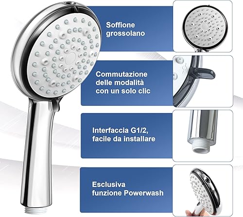 Pomme de Douche, Douchette à Main à économie d'eau, 6 Modes de Pulvérisation, Facile à Installer et à Nettoyer, Pommeau Douche en Acier Inoxydable