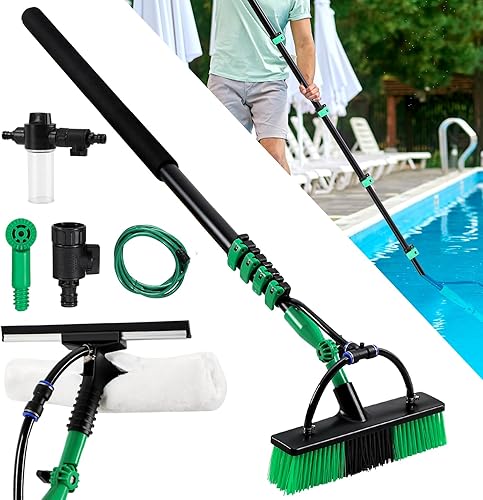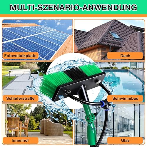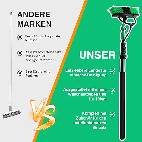 Daromigo Brosse de lavage télescopique de 4,8 m avec manche télescopique, en aluminium, brosse de lavage télescopique avec raccord d'eau, toit de terrasse et fenêtres, brosse de lavage télescopique