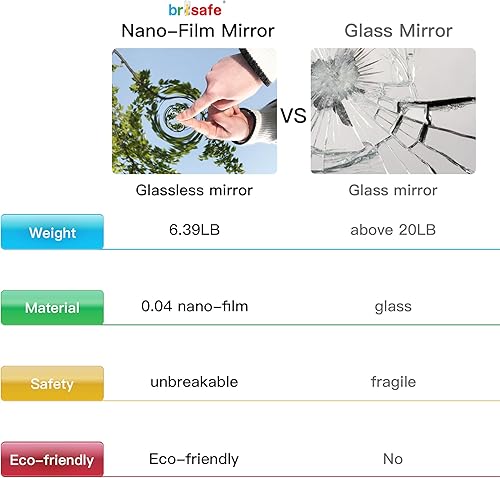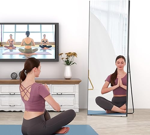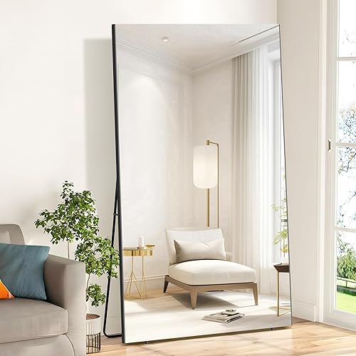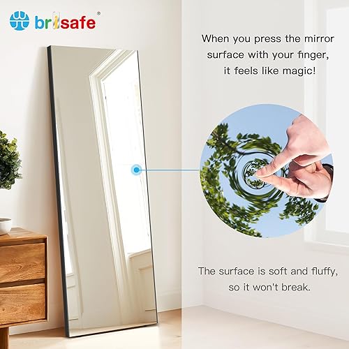 brisafe Miroir sur Pied 180 x 100 cm, Miroir de Sol Pleine Longueur avec Cadre Blanc, Grand Miroir Mural Miroir avec Film Nano Incassable pour Chambre, Salon, Entrée, Salle de Sport