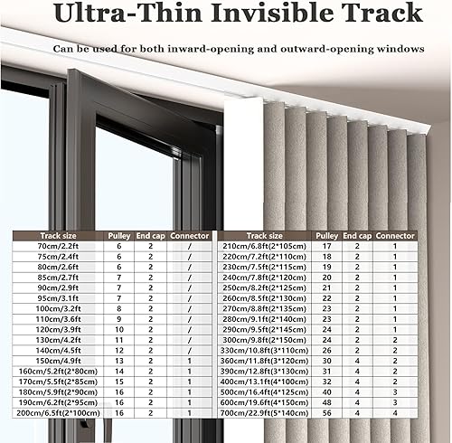 WATAOW Rail Rideaux Plafond Ultra-Mince pour Fenêtres Ouvrant vers L'intérieur, Petits Espaces Tringle À Rideaux Coulissant, Adapté Aux Rideaux De Chambre Balcon(110cm/3.6ft)