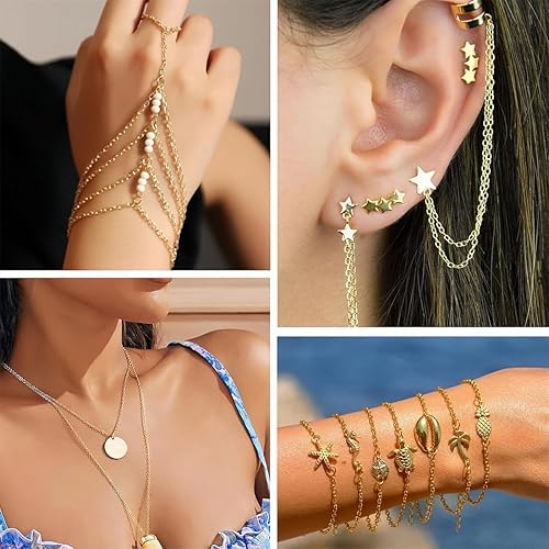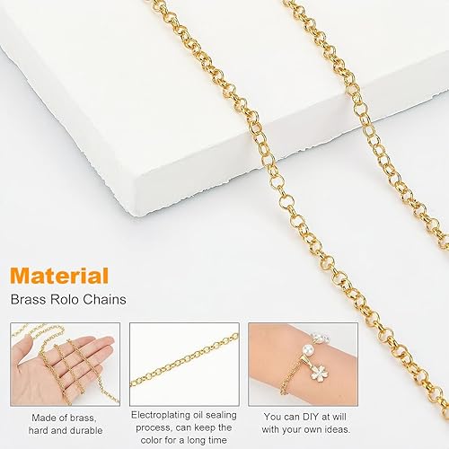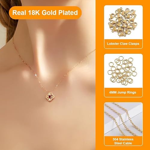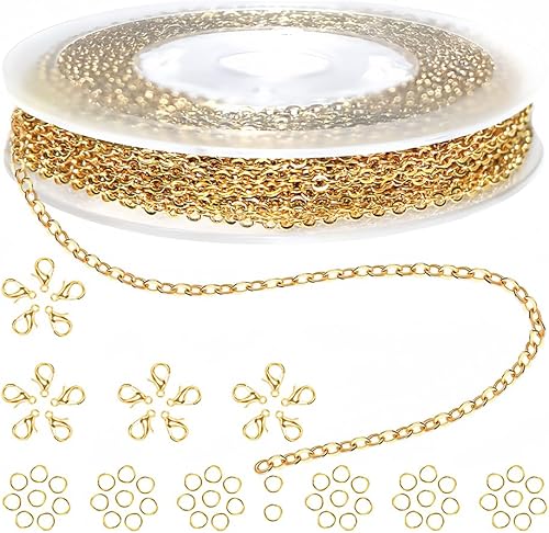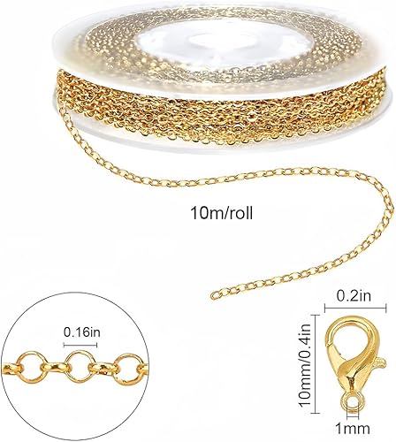 PYRUVAE 1 Volume 10m Collier Chaine, Kit de Chaînes de Collier, Chaîne en Acier Inoxydable avec 20 Fermoirs Homards et 50 Anneaux de Saut pour la Fabrication de Bijoux(or