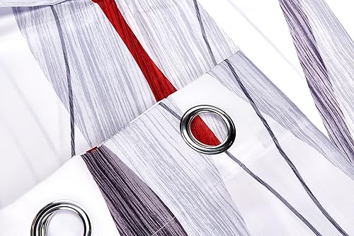 Douceur d'Intérieur, Rideau à Oeillets (140 x 260 cm) Ondulys Rouge, Polyester Imprimé