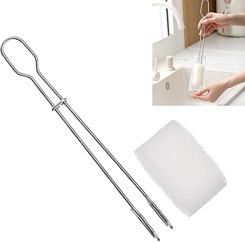 Brosse à Bouteille, Brosse éponge à Bouteille, Pince à Pince, Brosse de Nettoyage de Vaisselle en Acier Inoxydable avec Long Manche pour Bouteille d'eau, Tasse, Plat, 12,8 Pouces
