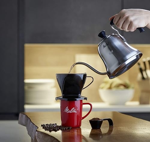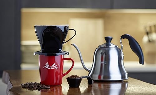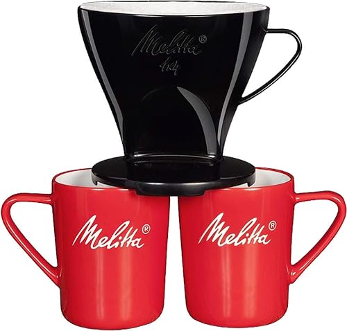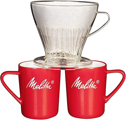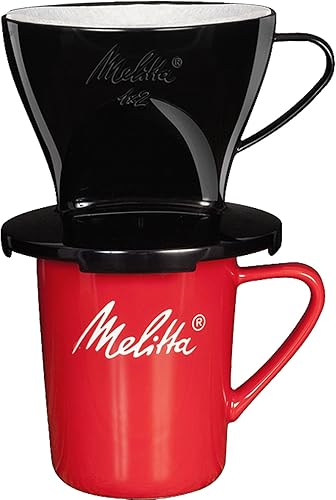 Melitta Kit de Filtration Manuelle, 1 Porte-filtre de Taille 1x2, 1 Mug en Porcelaine (290 ml), 5 Filtres à Café 1x2, Pour Over, Transparent