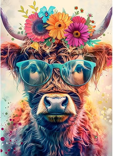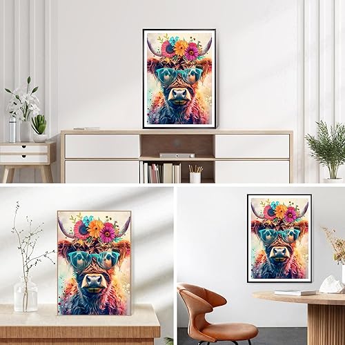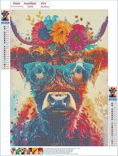 DPHERO 5D Vache des Highlands Diamond Painting Kits, DIY Broderie Fleurs Art du Diamant Painting Kit Complet, Verres Kits de Peinture sur Diamant Point de Croix Painting pour Adultes Débutants 30x40cm