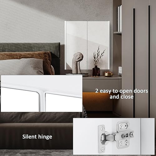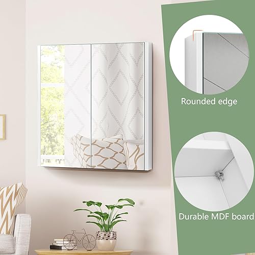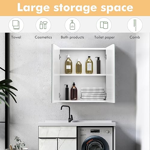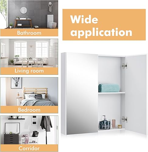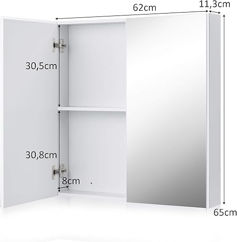 LIFEZEAL Armoire avec Miroir de Salle de Bain, Armoire Murale avec 2 Portes et 2 Étagères, Meuble WC Suspendu, 62 x 11,3 x 65 cm, pour Salle de Bain, Chambre à Coucher, Blanc