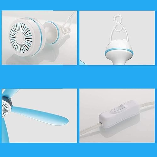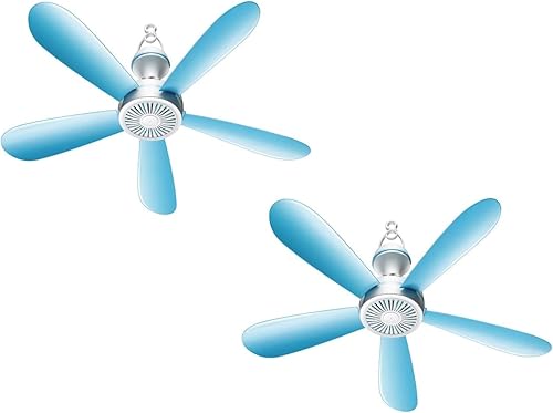 AntDau71® - Lot de 2 mini ventilateur de plafond de 25 W avec crochet, 5 pales, interrupteur marche/arrêt et prise - Portable, facile à installer, idéal pour le camping, la maison, les tentes, le