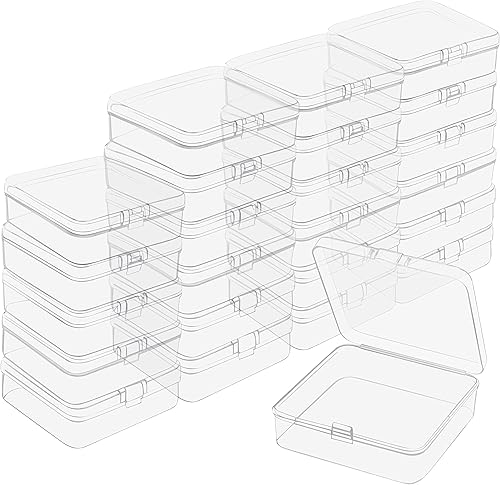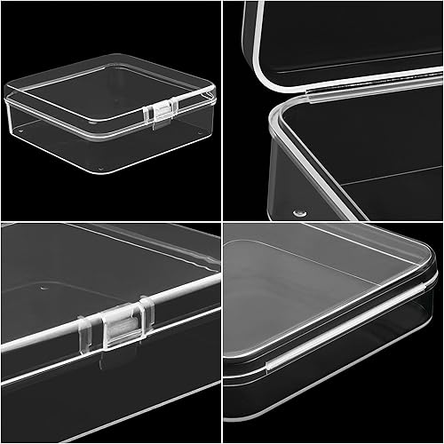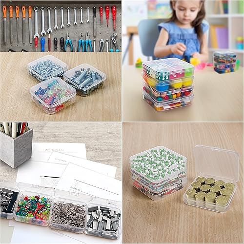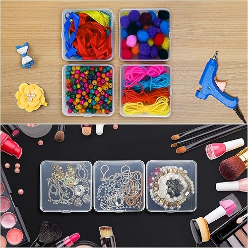 BELLE VOUS Petite Boite de Rangement Plastique Transparent avec Couvercle à Charnière (Lot de 24) - L8,3 x l8,3 x H2,8 cm - Mini Boite Rangement Plastique pour Pilules, Perles, Bijoux et Artisanat