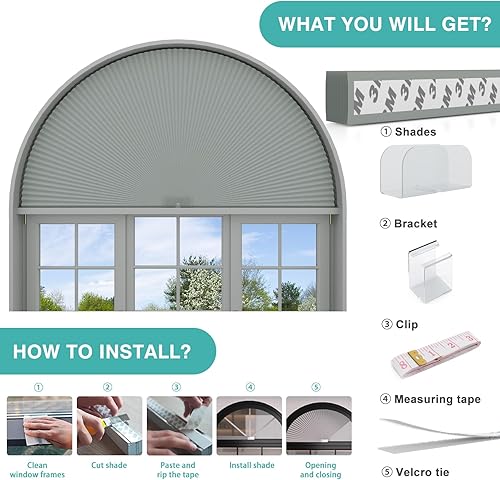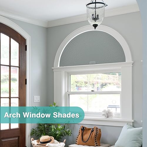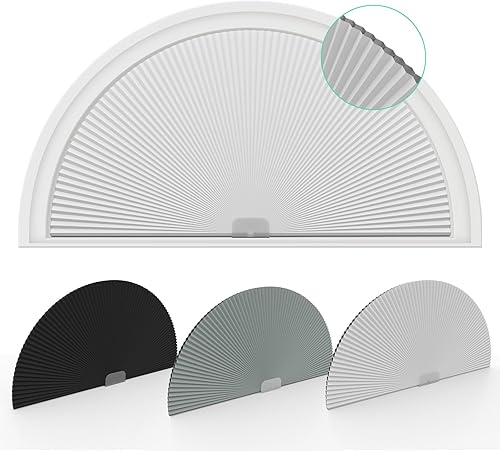 Changshade Lot de 2 stores occultants en forme d'arche pour fenêtre, demi-lune (rayon : 61 cm), stores cellulaires plissés, demi-cercle sans perçage, faciles à couper et à installer