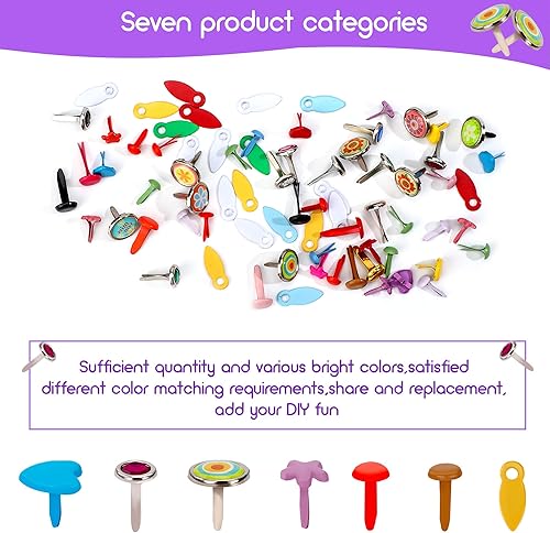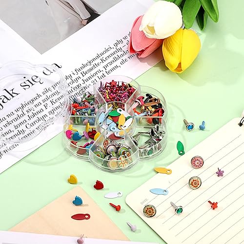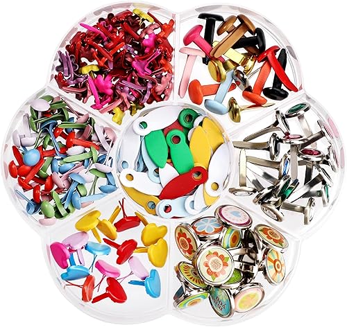 Attache Parisienne 210 Pièces Mini Brads Multicolore Scrapbooking Métal Ronde Brads Métal Attaches Broches Fendues pour Scrapbooking Craft Papier Bricolage Estampage Accessoires 6-12mm