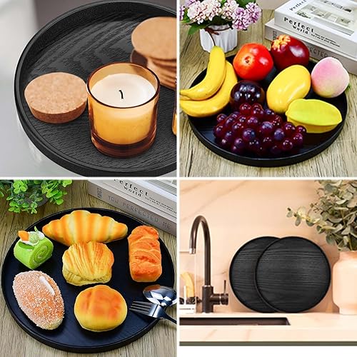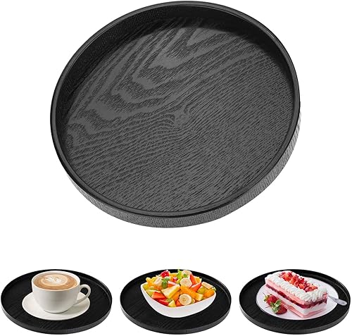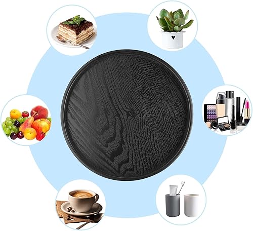 ZHYUAN Plateau de service rond de 30 cm - Noir - Plateau de service rond en bois - Plateau de service décoratif - Plateau de service rond - Plateau décoratif en bois