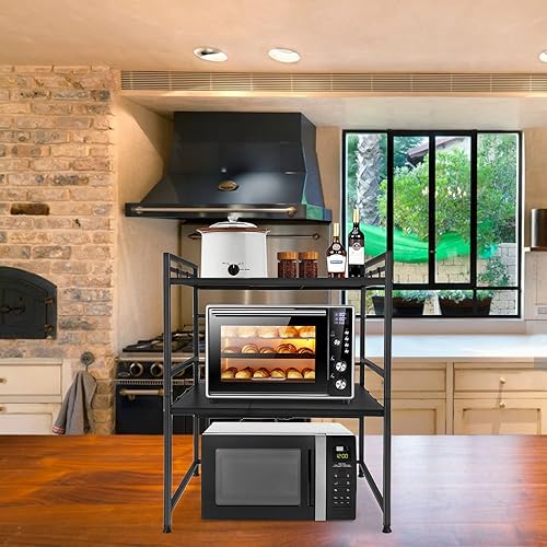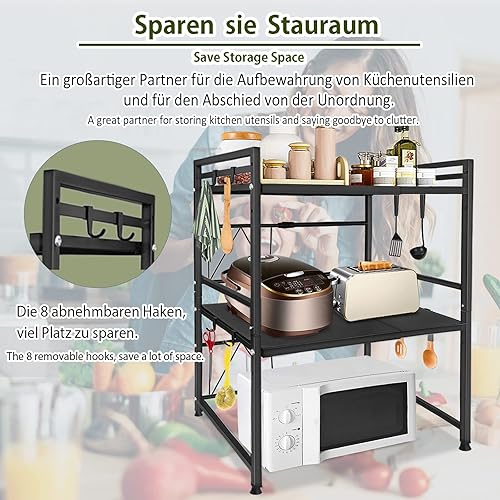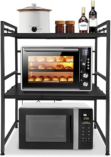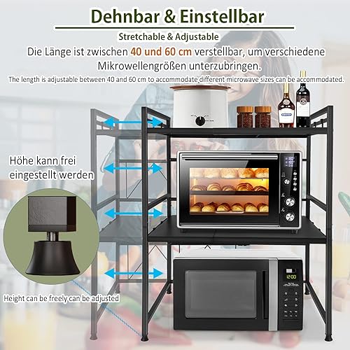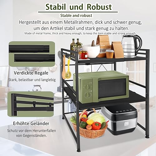 YARDIN Support pour micro-ondes - Support pour micro-ondes - Étagère extensible pour la cuisine - Cadre en métal pour la cuisine - Noir
