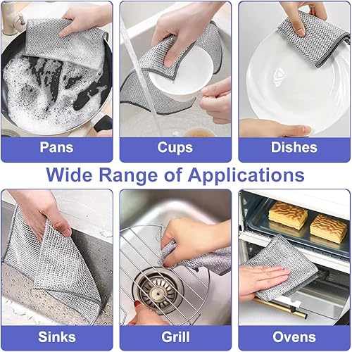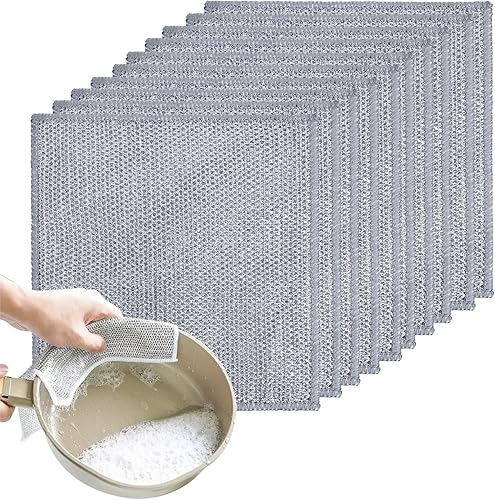 10 Pièces Chiffons à Vaisselle en Fil Métallique, Torchon Multifonctionnel en Fil Métallique Anti-Rayures, Torchon Fil Metallique pour Eau et Sec,pour la Vaisselle Le Comptoir la Cuisinière20*20cm