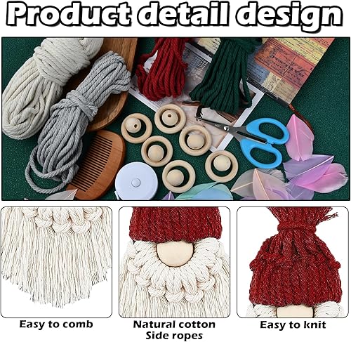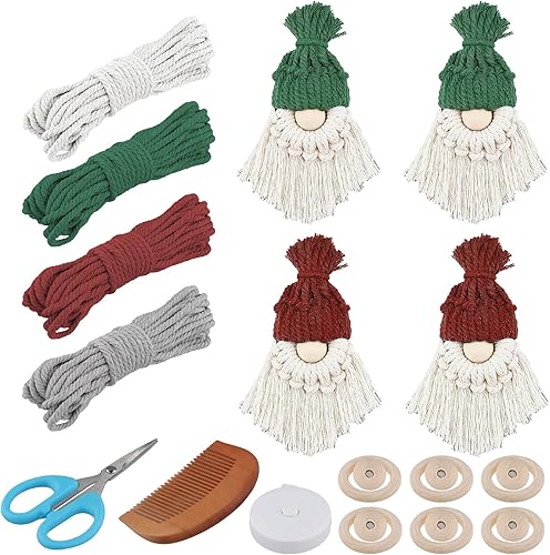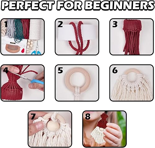 volumoon 6 Set DIY Père Noël Macramé Kit, Kit Macramé de Noël avec Instructions, Set de Gnomes en Macramé Kit, Bricolage Père Noël Kit pour Maison Décor de Vacances, Arbre de Noël Suspendus Décor