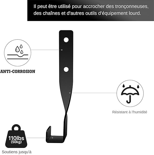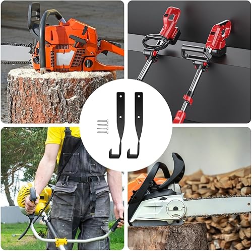Support mural pour tronçonneuse et désherbage | Crochet de rangement multifonctionnel pour scie à chaîne | Support mural pour outils de jardinage en acier noir de Générique