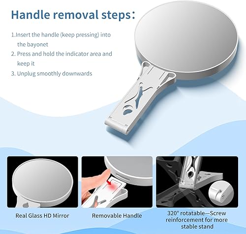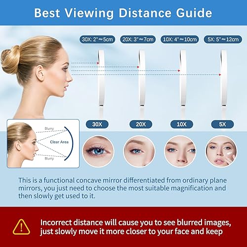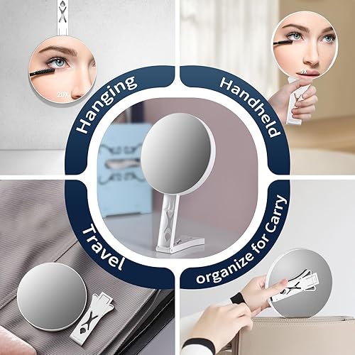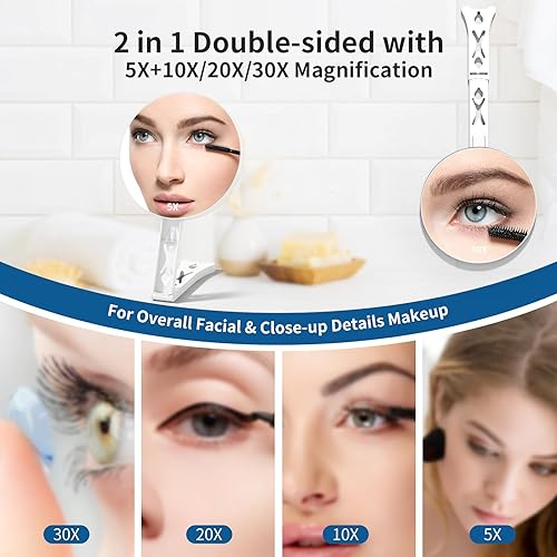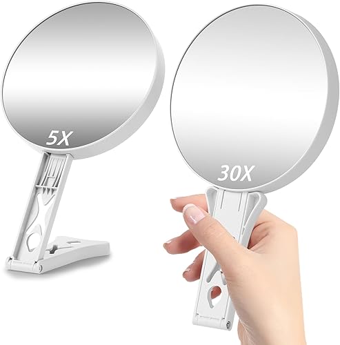 Junyaoxuan Miroir grossissant double face avec grossissement 5x/30x, miroir grossissant pour maquillage avec poignée, miroir de voyage de 13,97 cm et grossissement