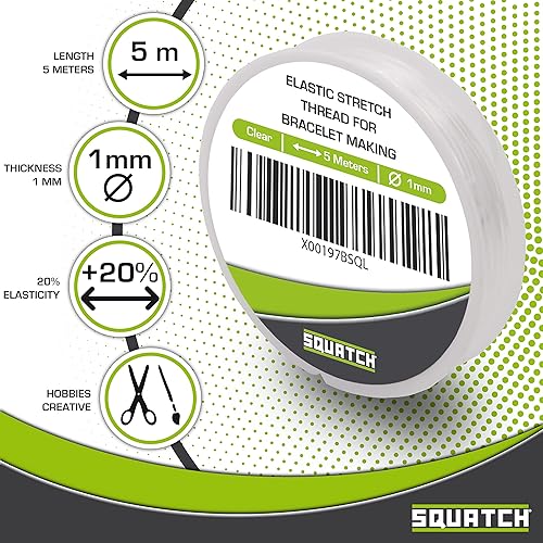 SQUATCH® | 1 Bobine Fil Extensible Élastique Transparent pour Fabrication de Bracelets et Bijoux | Longueur 5 mètres