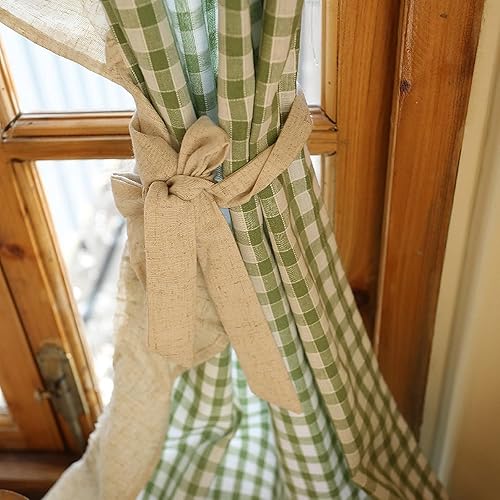 Lot de 2 rideaux courts en coton pour petite fenêtre - Motif vichy - Vert - 70 x 120 cm (l x H)