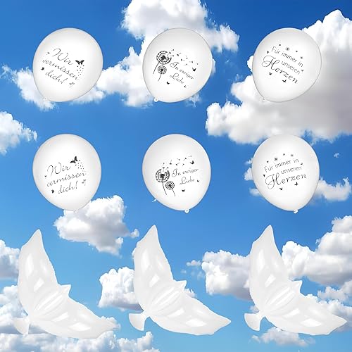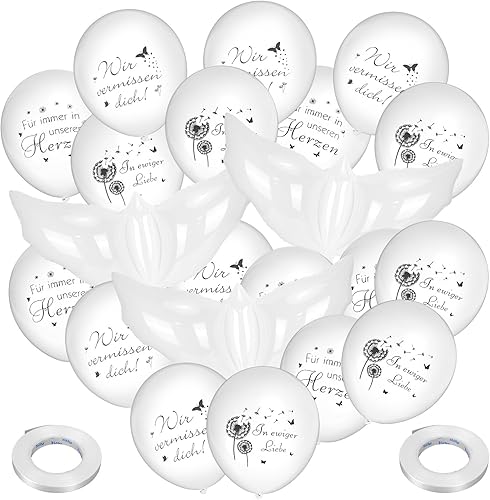 Kaempe Lot de 33 ballons blancs pour décoration funéraire, cadeau de deuil, cadeau de consolation, ballons à l'hélium