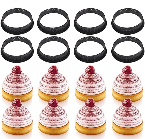 vitihipsy 8 PCS Moule à Gateau Perforé Cutter Forme Ronde Mousse Cercle Anneau,ercle tartelette,Moule perforé La Décoration de Gâteau