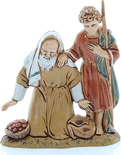 Moranduzzo Agenouillé avec Enfant pour Crèche de 10 Cm Échelle 1:20Bergers-Figurines Indestructibles-Style Arabe,Peinture Finition à la Main,Produit Officiel,Fabriqué en Italie,Sculpteur M. Landi