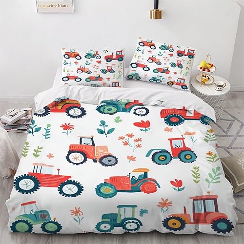 Générique Housse de Couette 120x150 Tracteur Parure de Lit 120x150 2 Personnes avec Fermeture Éclair 1 Taies d'oreiller 40x60 cm, Linge de Lit Microfibre Douce 5GX6101214