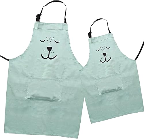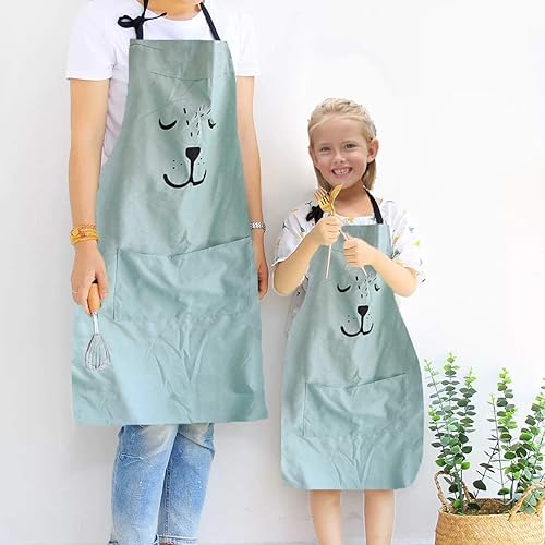 HILLHOME Lot de 2 tabliers en coton réglables pour parents et enfants avec poches, ensemble assorti pour maman et moi, pâtisserie, peinture
