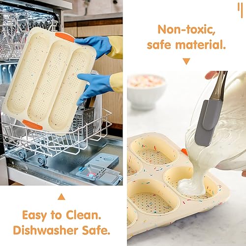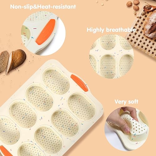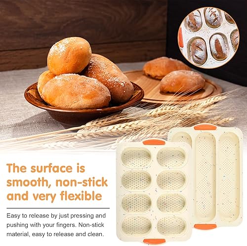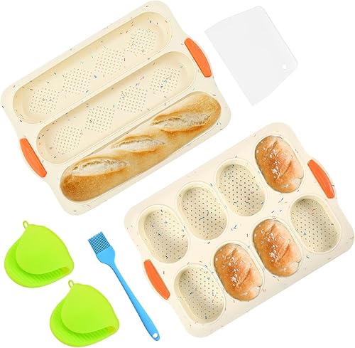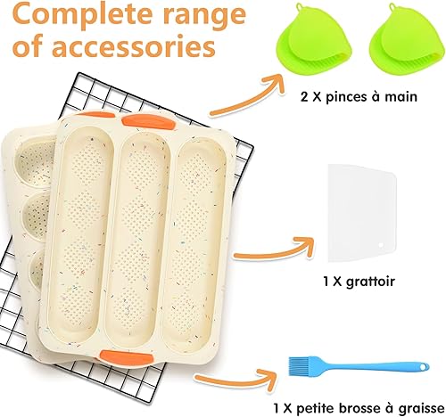 TLsiwio Pain Français Moule de Cuisson 2 Pièces Moule Baguette Silicone,Moule à Pain en Silicone avec 2 Clips Isolants et Pinceau à Huile