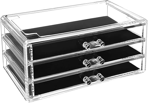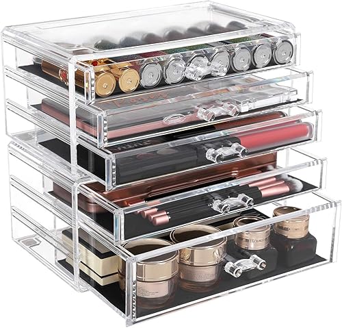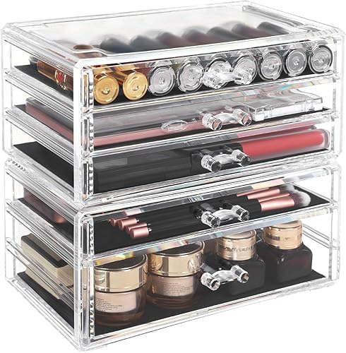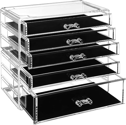 SONGMICS Organiseur de Maquillage, Ensemble de 2 Boîtes de Rangement pour Bijoux et Maquillage Empilables, 5 Tiroirs, cadeau noel, Organisateur de Cosmétiques en Polystyrène Transparent JMU32TP