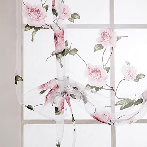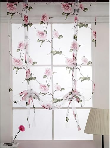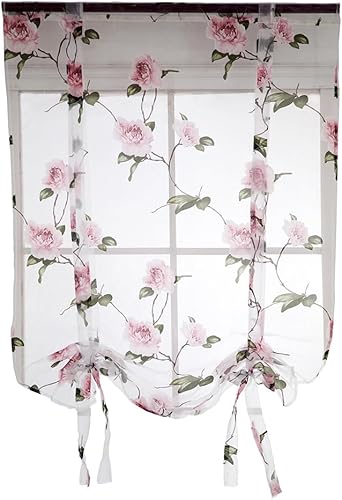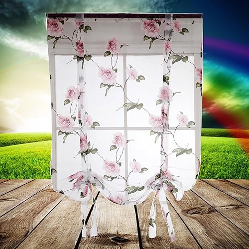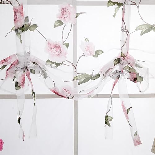 Garneck Rideau rose à nouer, motif floral romain, rideau occultant pour la maison, la cuisine, le bureau, les fenêtres Taille 1
