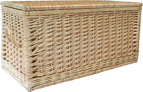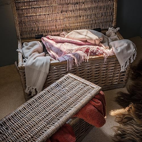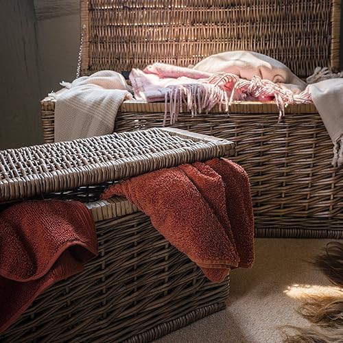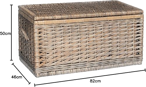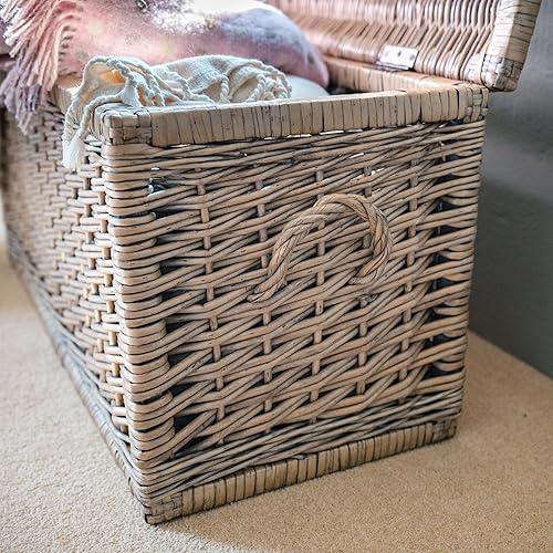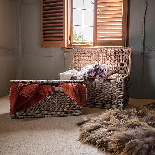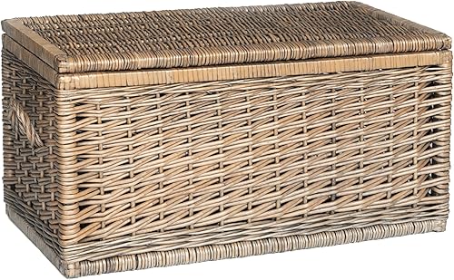 Arthur Cameron Rapallo Grand panier de rangement de luxe avec couvercle, fabriqué à la main en osier à double tissage, panier de rangement en osier, boîte de rangement (délavé antique, grand)