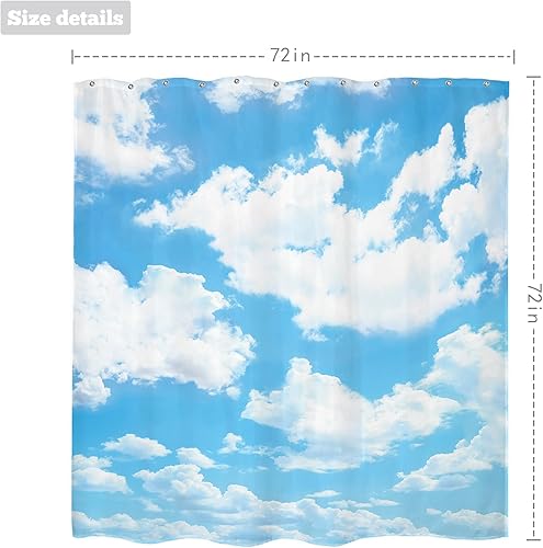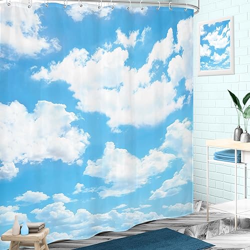 LIGHTINHOME Lot de 12 Crochets en Plastique pour Rideau de Douche en Polyester imperméable Motif Nuage Bleu Ciel Blanc 183 x 183 cm